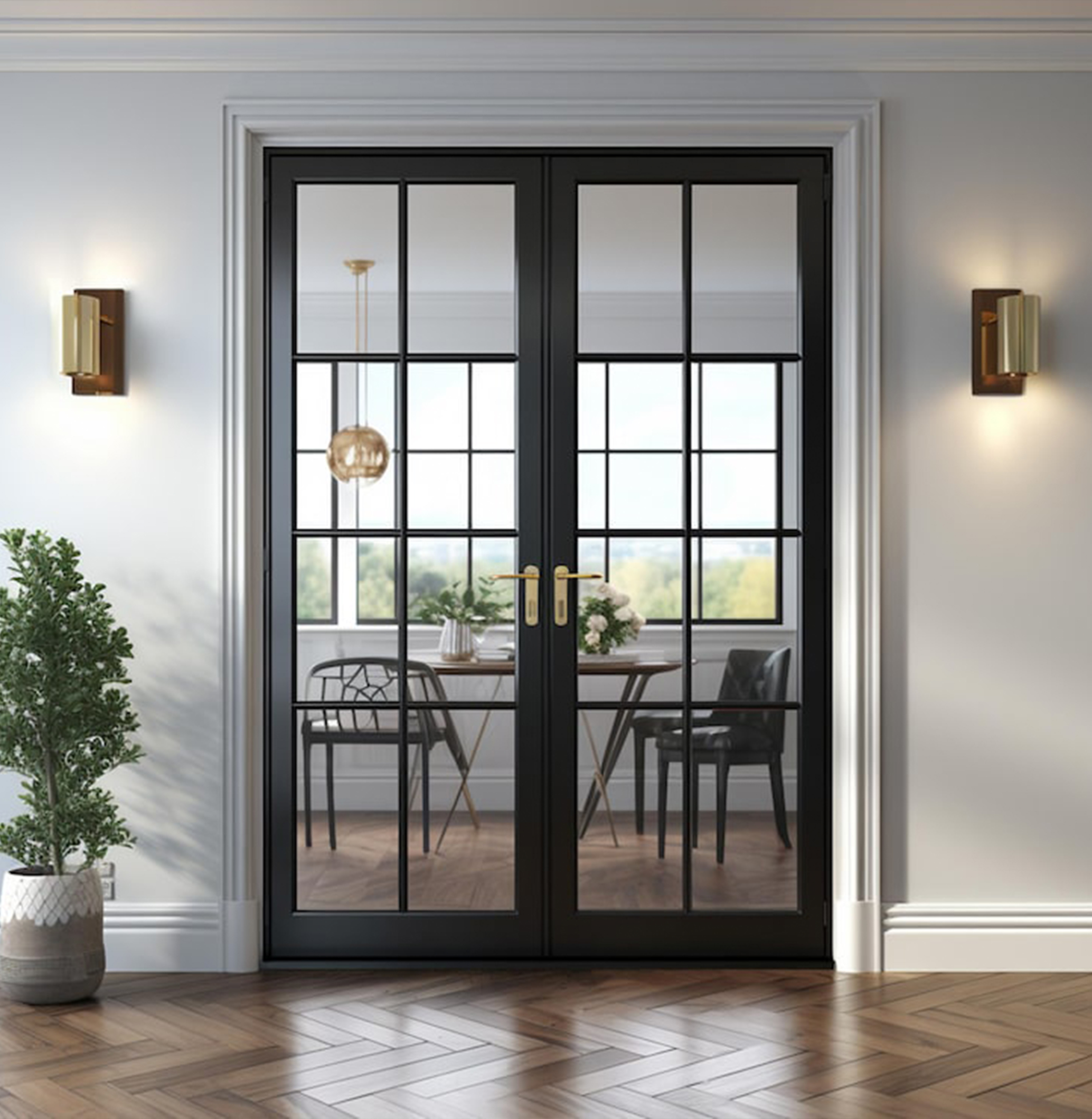 A Casement French Door is a pair of side-hinged doors that meet at the center and open either inward or outward, combining the elegance of a traditional French door with the smooth operation of a casement window. Each leaf is hinged on its outer vertical edge, allowing both panels to swing wide for a completely unobstructed opening.